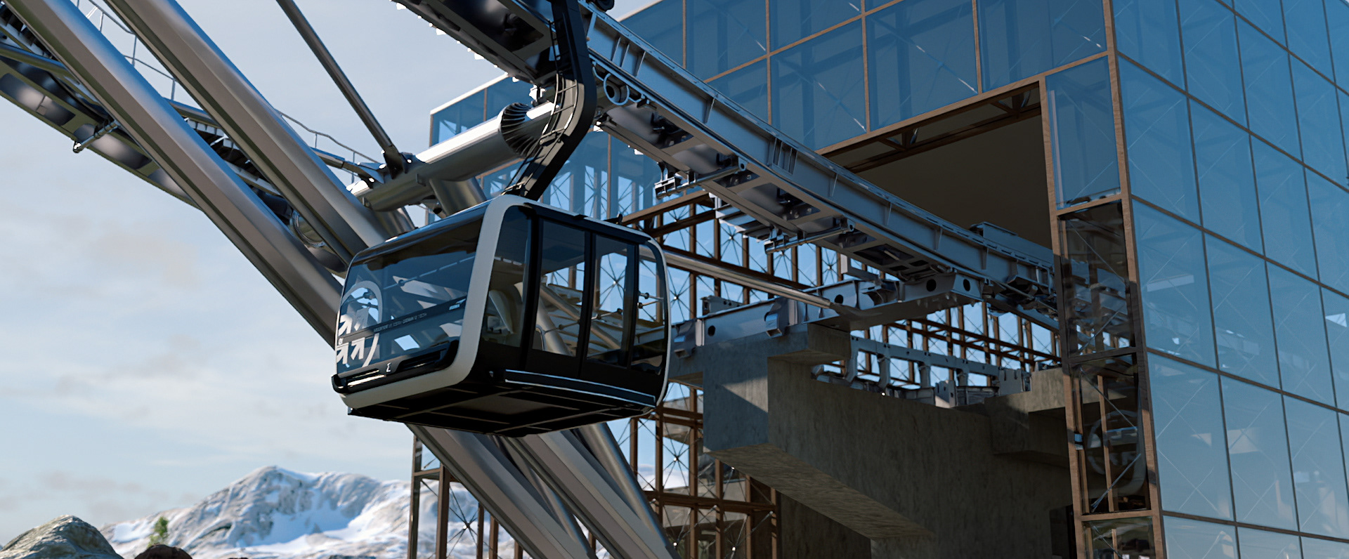 Extrait de la vidéo commerciale en animation 3D de présentation du projet de reconstruction du site des Grands Montets.