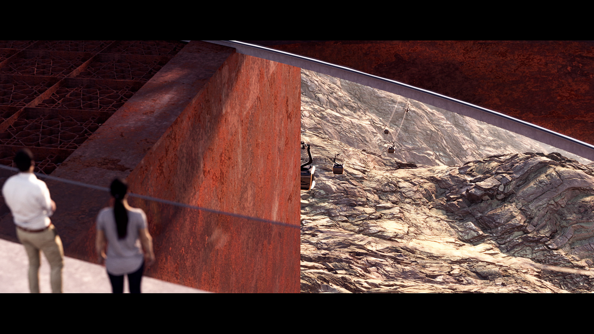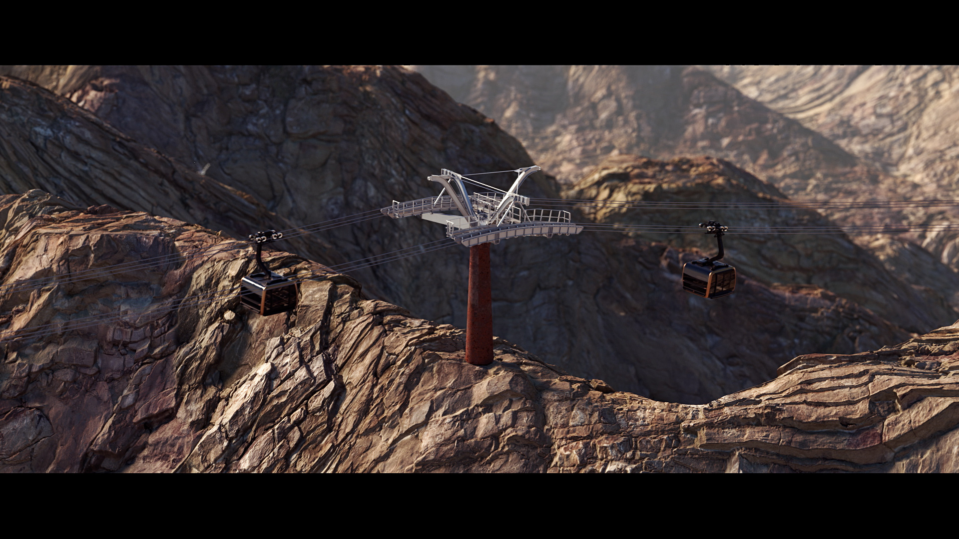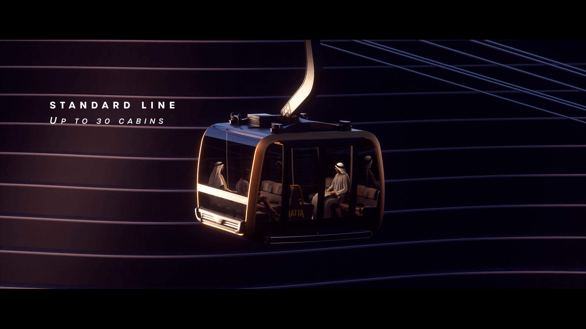 Extrait en animation 3D de la vidéo commerciale de présentation du projet architectural de transport par câble à Dubaï.